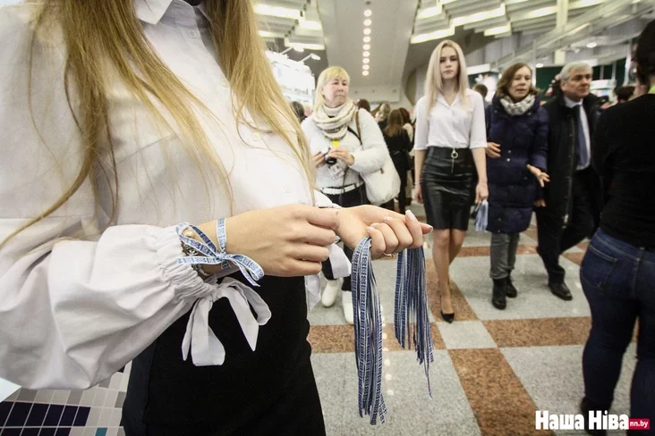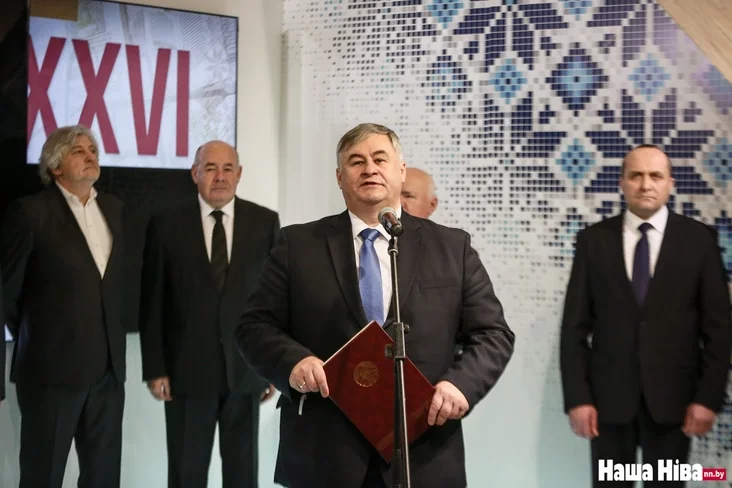 После стихов и песен с белорусского языка перешли на русский. Приветствие от президента зачитал заместитель главы Администрации Владимир Жевняк. Именно он теперь отвечает за идеологию. «Он в Хойниках родился, у него отец был заместителем начальника милиции. А после Чернобыля уже разъехались», — слышно, как про Владимира Жевняка рассказывает кто-то в задних рядах.