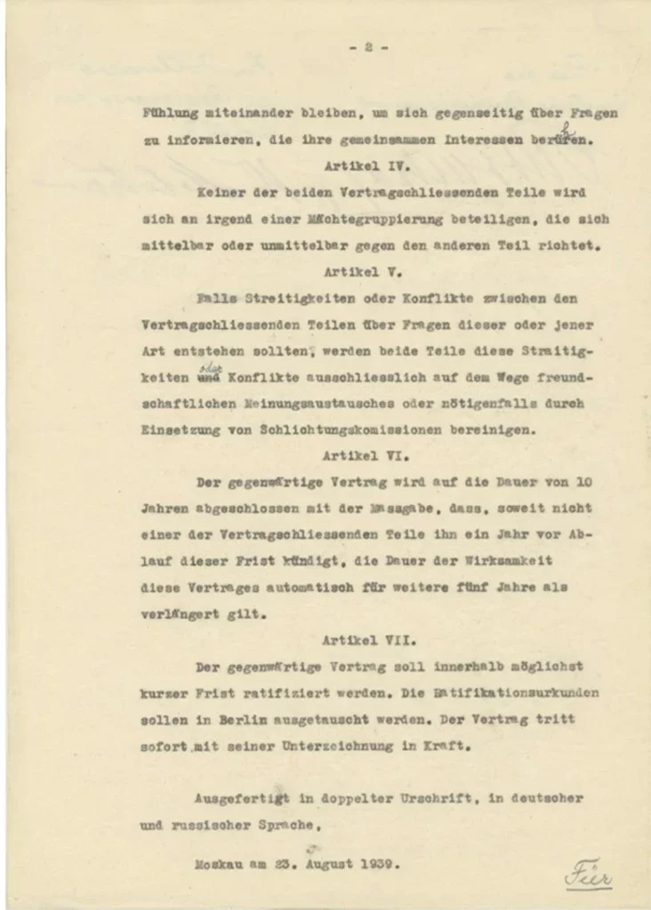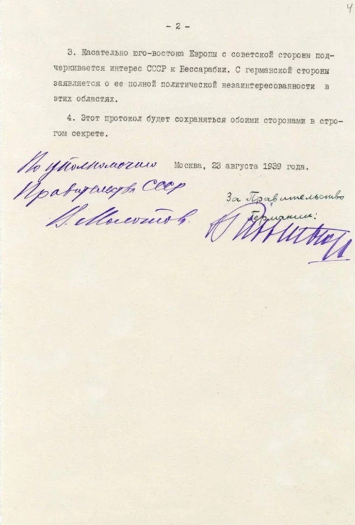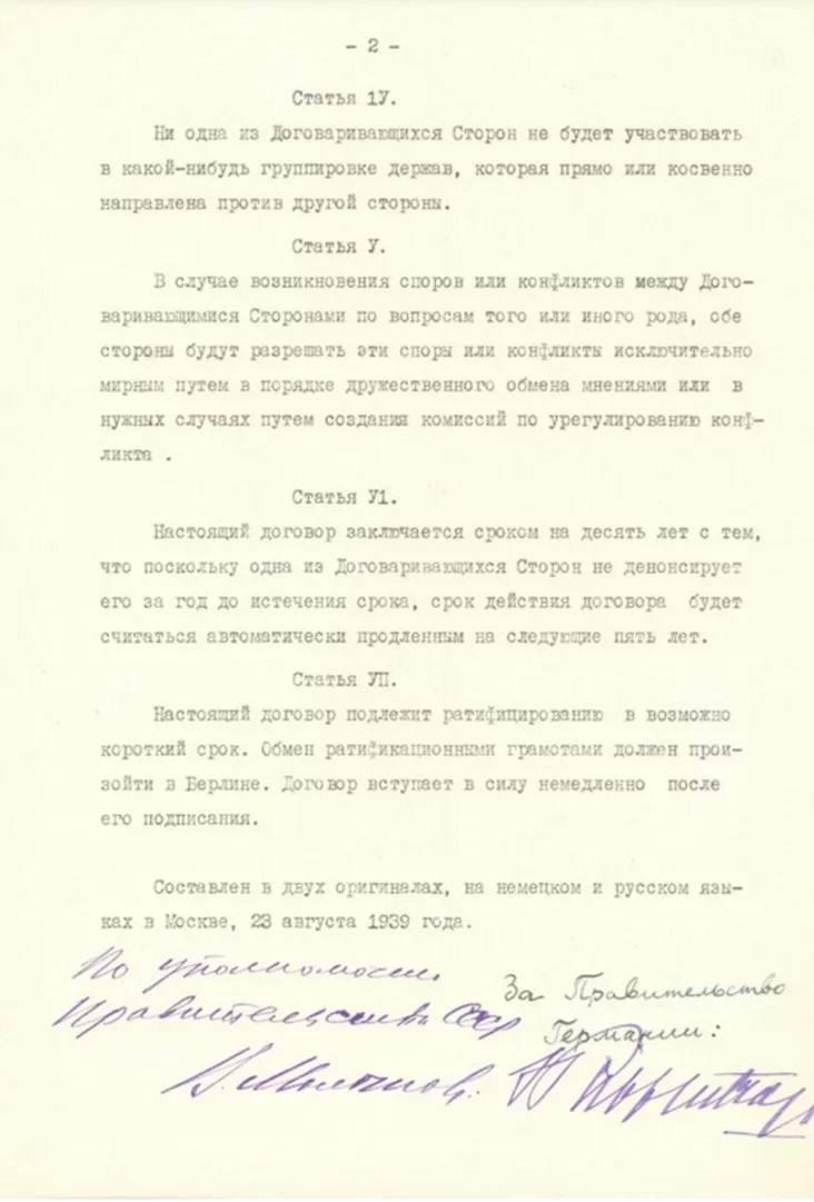 В России впервые опубликовали советский оригинал Договора о ненападении между СССР и Германией от 1939 года, известного как пакт Молотова — Риббентропа.