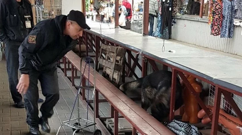 Служебная собака Смайл нашла 1,4 кг насвая под прилавком на рынке в Гомеле