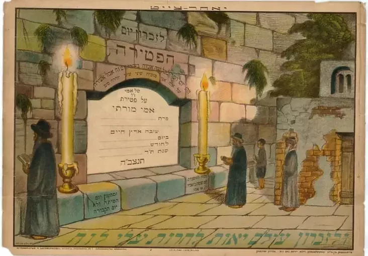 По информации с карты, она была разрешена военной цензурой Польши 27.09.1919 года и напечатана в литографической мастерской «N.Mac i syn» в Вильне (ул. Вроня, 3, после 1919 года — Домбровского, сейчас Якшта). Мастерская такая в Вильне действительно существовала, действовала она с 1872 года (или с 1869), ее держали евреи, которые издавали еврейские молитвенники и гравюры. На фото — ярцайт (бланк для поминовения усопших), напечатанный в этой мастерской в 1920-х гг. В 1938-м типографией владела Зофия Мац.
