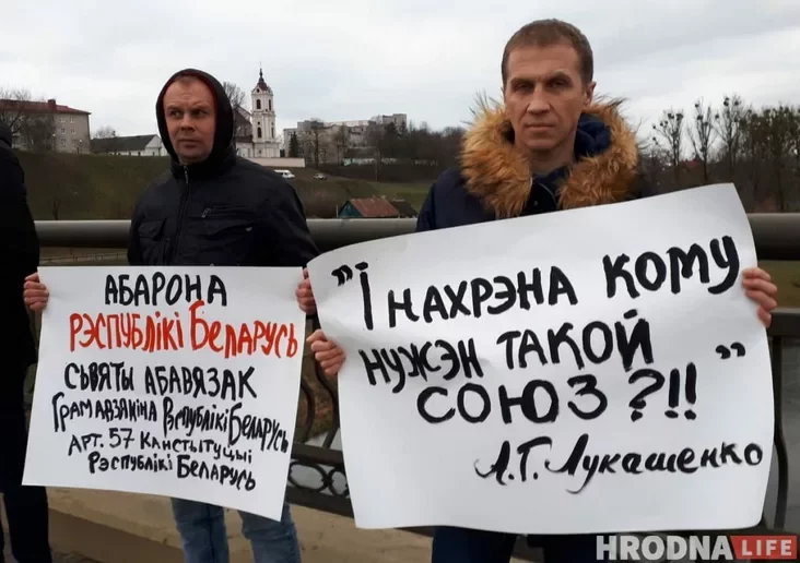 Около 70 человек собралось в 15.00 на Старом мосту в Гродно, чтобы выразить свое несогласие с «углубленной интеграцией» Беларуси и России, в результате которой Беларусь может потерять независимость, пишет Hrodna.life.