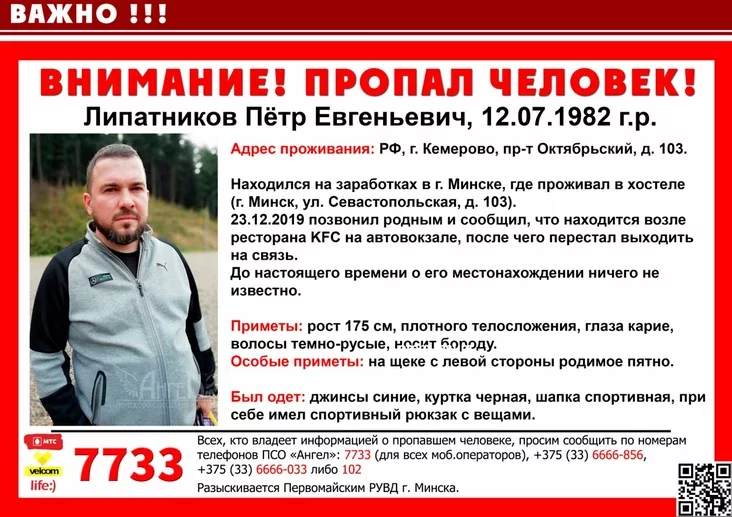 Он приехал в Минск на заработки из российского Кемерово. Жил в хостеле на улице Севастопольской, но 23 декабря перестал выходить на связь.