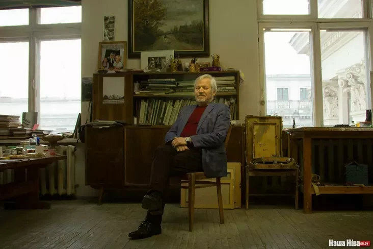 — Натура ў мяне такая, што я не магу пастаянна жыць на адным месцы. Гэтую зіму я амаль цалкам пражыў у Мінску, у майстэрні. Рыхтаваўся да выставы, трэба было часта бываць у музеі. Таму я ўжо трошкі стаміўся ад Мінску, чакаю, пакуль скончыцца выстаўка і хочацца хутчэй паехаць у Навагрудак. Зімой правінцыя трошкі заціхае, там сумнавата. Хаця с узростам я ўжо не тусоўшчык, не так, як гэта было ў маладосці, я не такі падкі на новыя знаёмствы. Я прыходжу ў майстэрню на праспекце Незалежнасці, мне тут добра аднаму. Але галоўнае — адчуваю рытмы за акном, адчуваю жыццём. Я гляджу з акна на праспект— і мне камфортна, людзі тусуюцца, мітусяцца, ідуць. А ў Навагрудку я гляджу на вежы замка ці на фарны касцёл — і цішыня. Хочацца адчуваць жыццё за акном.
