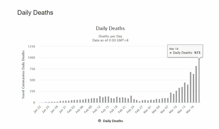 Как выглядят ГРАФИКИ числа ежедневно выявляемых инфицированных и смертей от коронавируса в мире на 18 марта