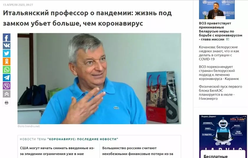 Государственное агентство БелТА и «СБ» предоставили слово итальянскому шарлатану-антивакцинисту