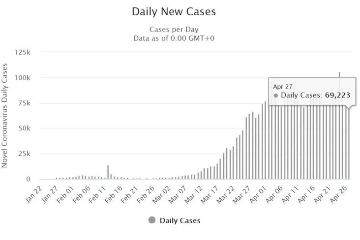 27 апреля в мире зафиксировано 69 223 новых случая (в воскресенье — 73 858).