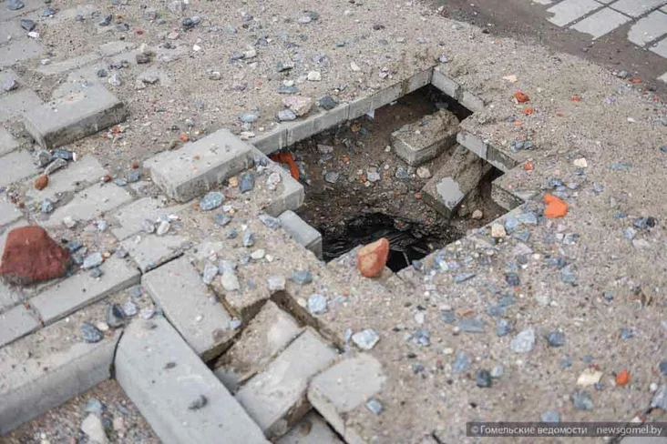 В центре Гомеля в воздух взлетели грунт и плитка, повреждено несколько машин