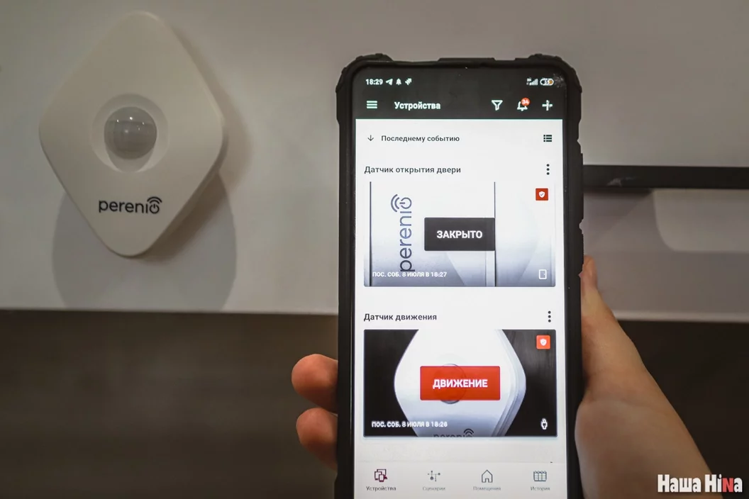 «В приложении есть несколько режимов. Когда уходишь, включаешь «охрану». Возвращаешься — снимаешь ее, чтобы устройства не реагировали, пока ты находишься в квартире», — поясняет Евгения.