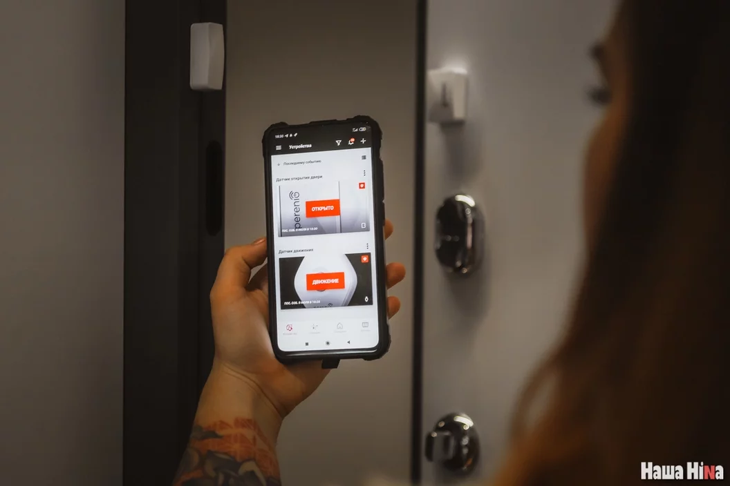 На входе в квартиру она установила на дверь датчик открытия. Когда дверь открывается, в телефоне сразу появляется тревожное сообщение. В приложении также отображается, сколько минут или часов прошло после предыдущего открытия двери.