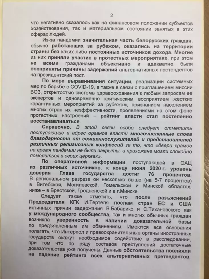 Сообщается, что в конце июня 2020 года уровень доверия к Лукашенко якобы достиг 76%.