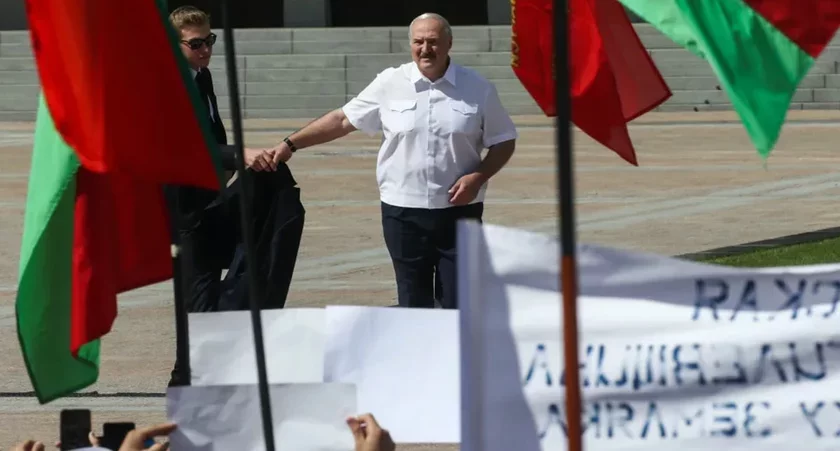16 августа на площади Независимости в Минске прошел митинг в поддержку Александра Лукашенко. Во время выступления Лукашенко передал пиджак сыну Николаю, который находился там же на площади.