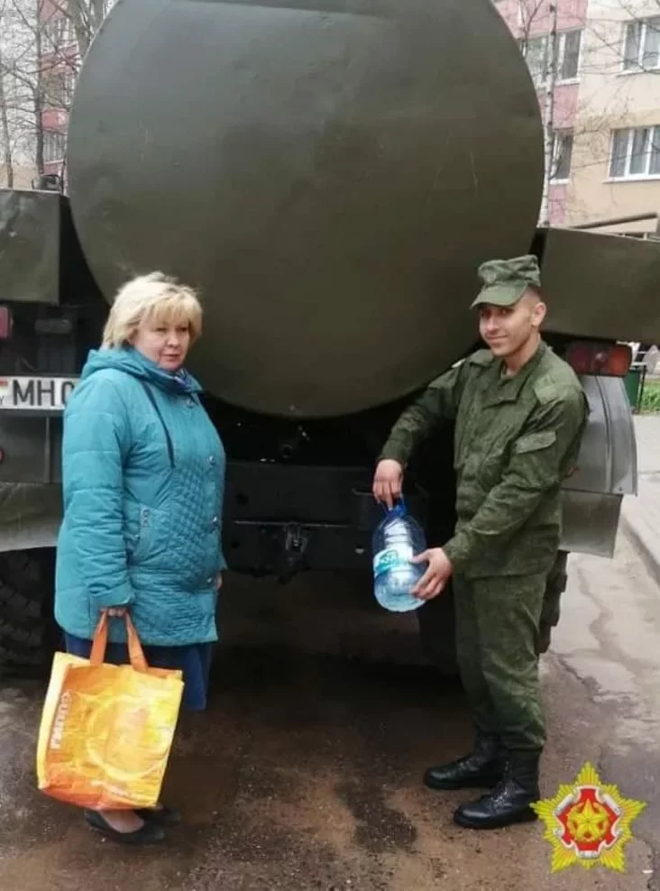 16 автоцистерн из 12 воинских частей обеспечивают подвоз более 97 т питьевой воды минчанам, в школы, детские сады, другие учреждения.