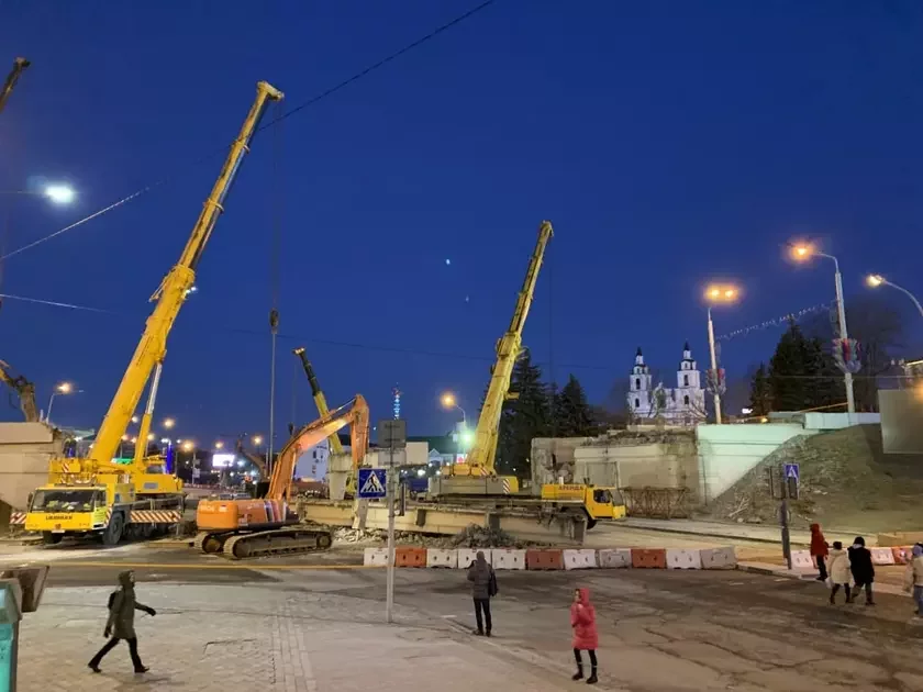 Часть моста-путепровода через улицу Немига в Минске внезапно обрушилась в ночь с 7 на 8 января. Власти приняли решение полностью его демонтировать, а построить новый председатель Минского горисполкома обещает всего за месяц.
