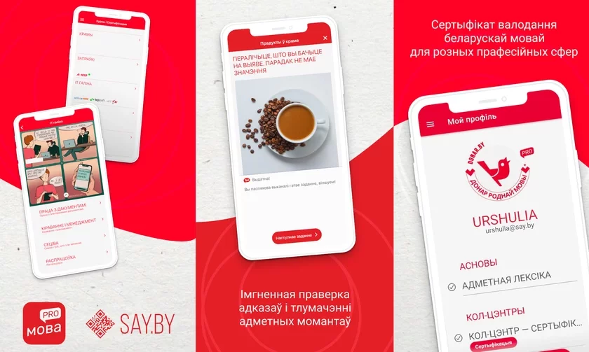 «Мова прафесіі» — мобильное приложение под Android и iOS, которое должно научить белорусов разговаривать по-белорусски на работе. Скачать приложение «Мова прафесіі», посмотреть, о чем это, поддержать проект или подключить свою компанию, чтобы у нее появилась поддержка белорусского языка, можно на сайте say.by.