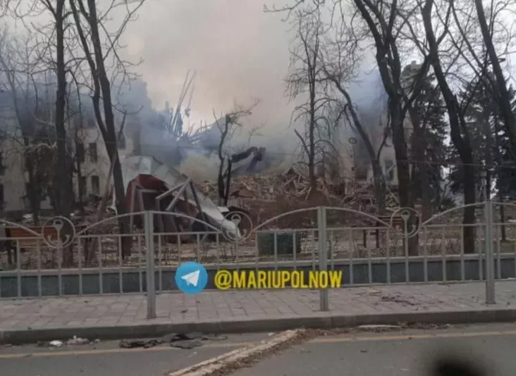 Россия сбросила сверхмощную бомбу на драматический театр в Мариуполе, в подвалах которого прятались сотни людей