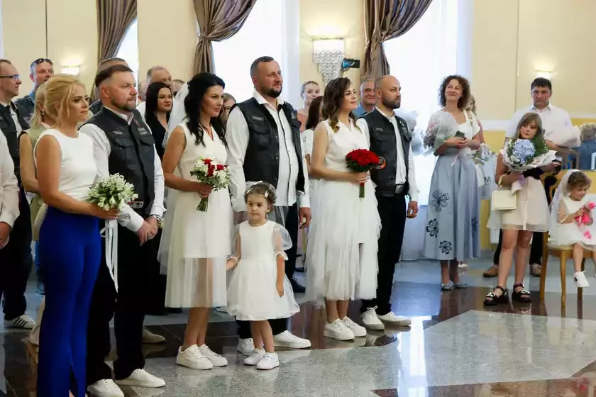 В Солигорском ЗАГСе одновременно зарегистрировали брак три пары байкеров