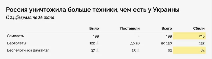 Пропагандистские СМИ объясняют: цифры украинских потерь растут так быстро потому, что российская армия уничтожает военную помощь, поступающую в Украину из Европы и США . В открытых источниках есть информация, что западные страны могли передавать Украине военные самолеты , но официально ни одно государство об этом не сообщало. В конце мая украинские СМИ лишь писали, что в Украину поступили штурмовики Су-25 в разобранном виде.