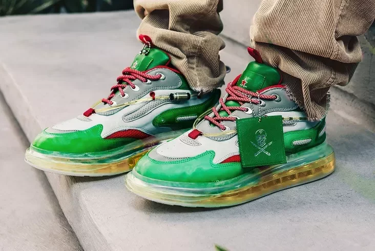 Ради создания 32 уникальных пар винокурня объединилась с «обувным хирургом» Домиником Чиамбраном — знаменитым дизайнером, который делал кроссовки для ЛеБрона Джеймса и Дрейка.