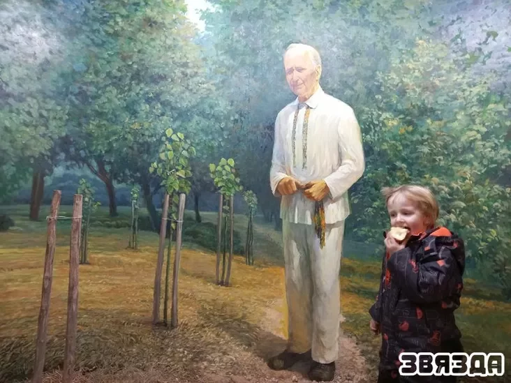 Обычно Иван Павлович начинал свою экскурсию с этой, как он ее называл, «волшебной» яблоньки, растущей у крыльца, прямо перед окном. Говорил: «Удивляетесь, вот деревце, а на нем привито восемь сортов яблок». Яблонька давала плоды разных цветов с июля по ноябрь. Уже на ней, к сожалению, остались только два сорта.