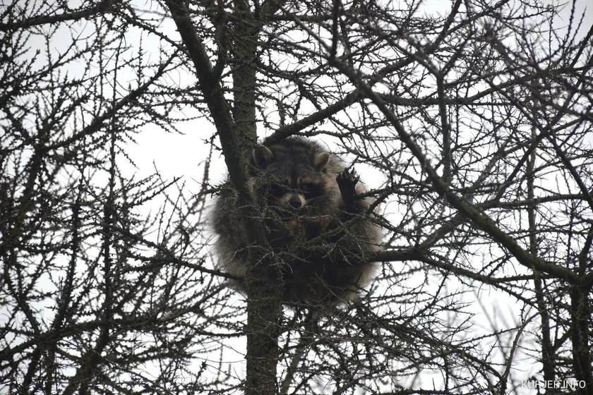Под вечер 27 января жительница Слуцка, проходя по улице, вдруг увидела на дереве необычного в наших местах зверя — енота. Сначала она позвонила в редакцию издания Kurjer.info, а после сообщила о находке в МЧС.