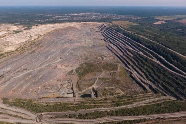 Глубина карьерной выработки составляет 150 метров, что на 20 метров ниже уровня Балтийского моря.