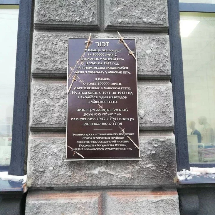 В ряде памятных мероприятий ко Дню памяти жертв Холокоста, который отмечается 27 января, Союз белорусских еврейских общественных объединений и общин повесил памятную доску на месте входа в Минское гетто в память о более 100 000 уничтоженных там евреев.