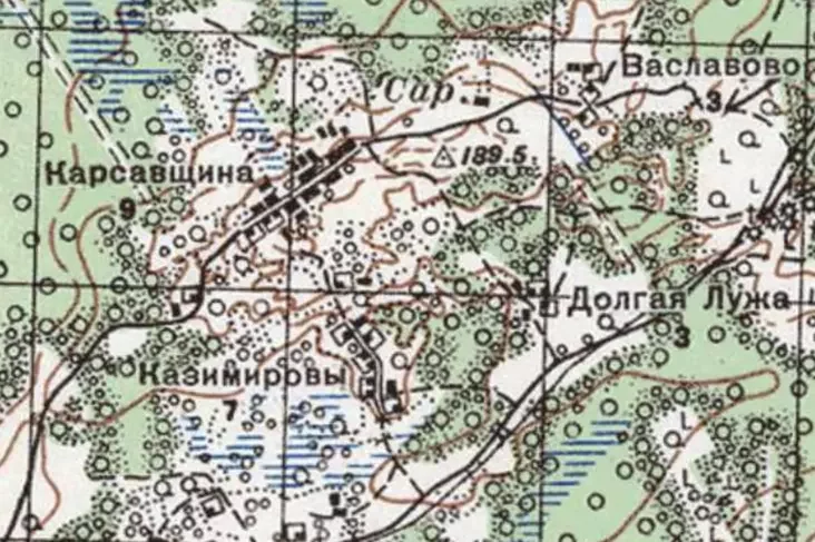 На 500-метровой карте РККА, которые издавались вплоть до самого начала войны, еще Карсавщина в окружении хуторов Ваславово, Казимировы, Долгая Лужа, Схеда — от этих поселений история не оставила никаких следов.