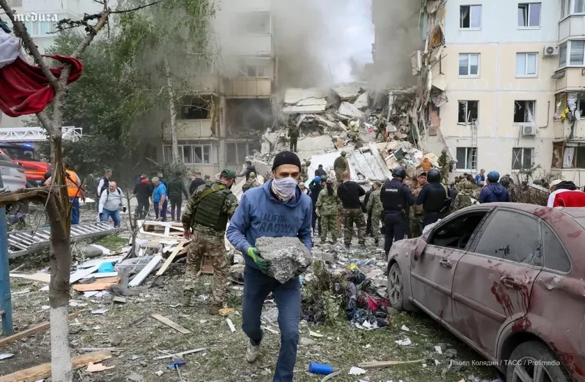 Минобороны России утверждает, что обвал подъезда вызван попаданием сбитой украинской ракеты. Следственный комитет возбудил уголовное дело о террористическом акте.