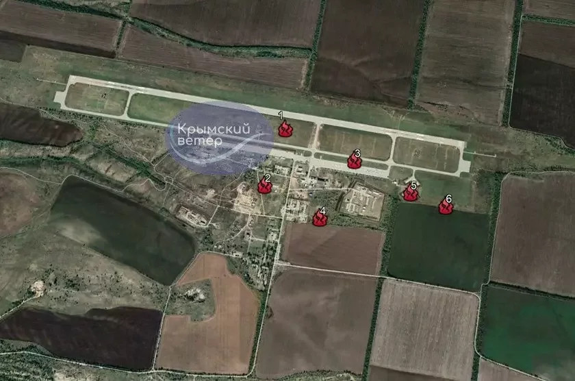 Всего вблизи аэродрома местные жители слышали не менее 16 взрывов, после чего в районе взлетно-посадочной полосы и стоянок самолетов начался пожар, отмечает телеграм-канал «Крымский ветер».