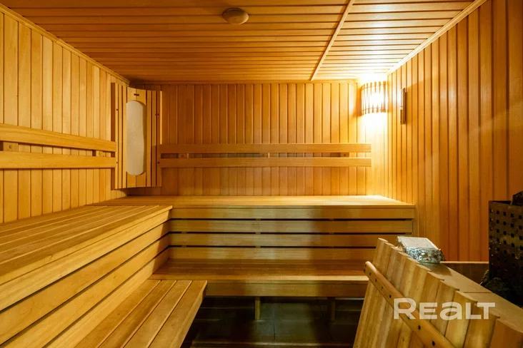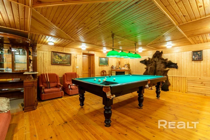 На цокольном этаже сделали зону отдыха с сауной и бильярдом.