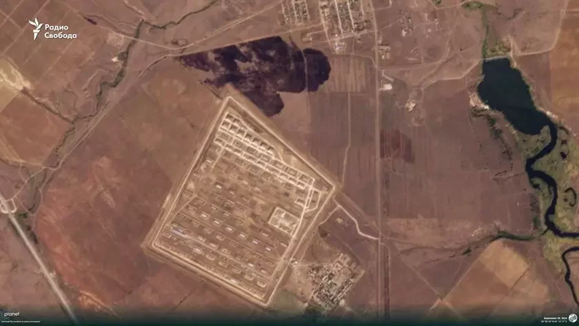 В сети появилось сегодняшнее фото со спутника, на котором виден пожар рядом с арсеналом Главного ракетно-артиллерийского управления в Котлубани Волгоградской области.