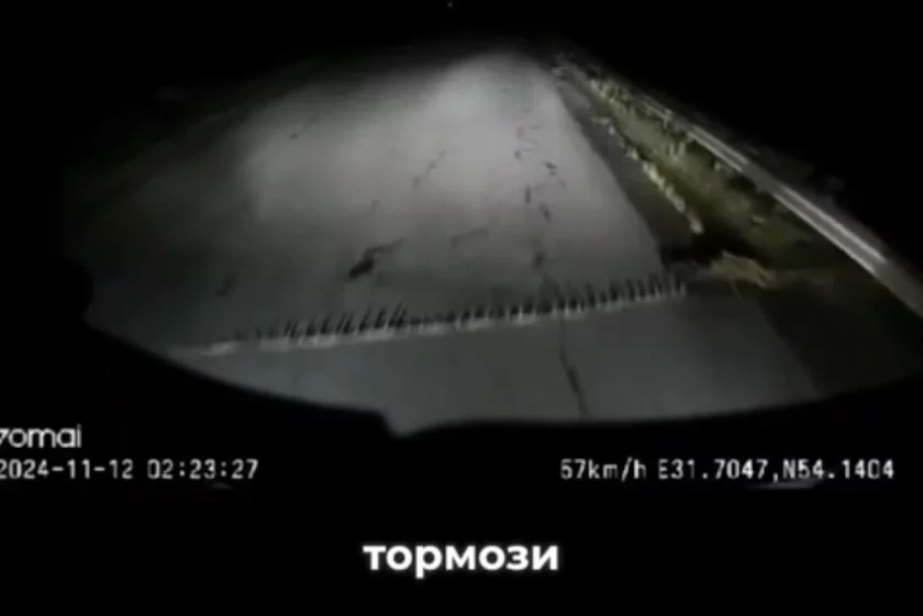 На кадрах, снятых за рулем в темное время суток, авто резко тормозит. «Тормози, тормози, б****!» — кричит мужчина, заметив что-то на дороге. После мужской голос говорит матом: «Кажется, нас приняли, потому что здесь расставлены ежики (шипы)».