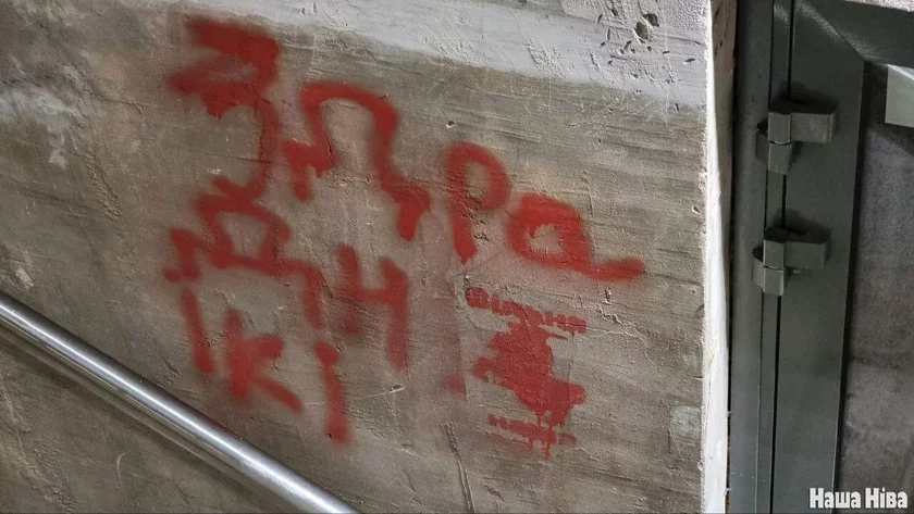 На стене возле входа в бар кто-то написал слово «Предатели», а также сделал трафаретную надпись «Вильнюс наш» с изображением герба «Погоня».