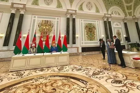 У подножия памятника сидит бронзовый таракан с лицом Лукашенко, который объедает ягоду, но при этом декларативно её "охраняет" лапками окрашенными в синий цвет.