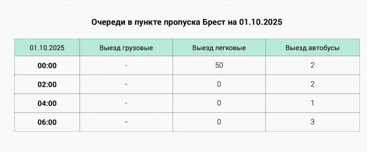 Сайт Пограничного комитета показывает, что по состоянию на 06:00 утра на переходе «Брест» нет очереди из легковых автомобилей и стоят три автобуса.