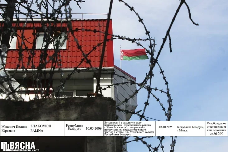 Среди прочих, там появилось имя 16‑летней Полины Жакович — ее осудили по «народной» ст. 342 УК в суде Первомайского района Минска. В милицейской базе было указано, что она якобы 2009 года рождения. На самом деле — 2003 года.