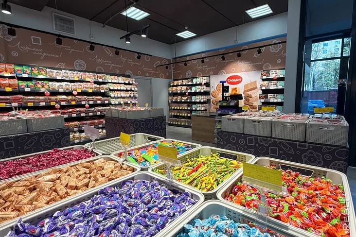 Еще одна точка, где можно купить сладости, — магазин «Слодыч». Здесь пахнет конфетами, есть варианты на вес и много фасованной продукции.