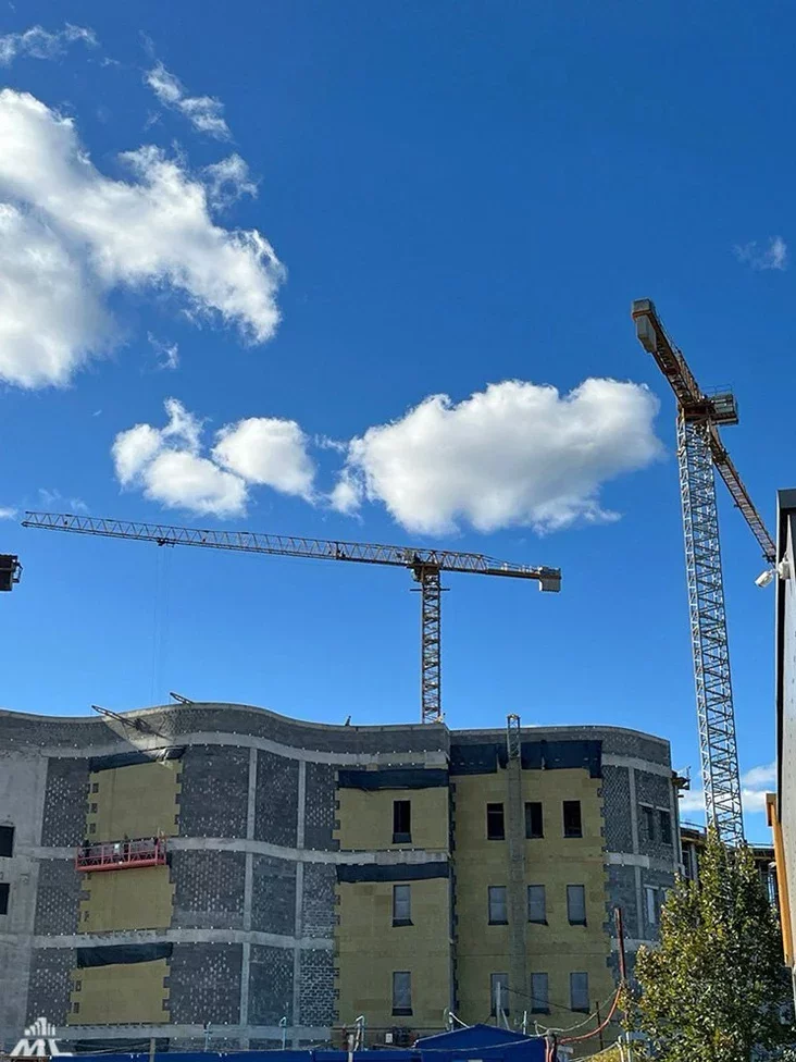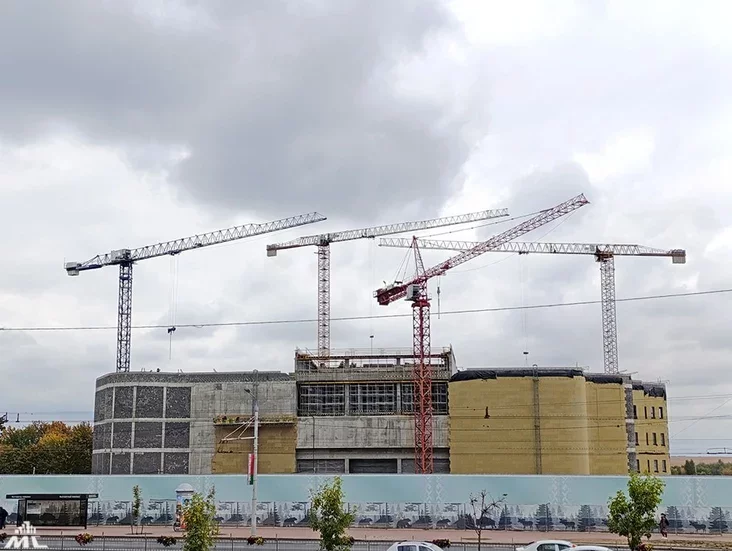 На объекте сейчас задействовано 320 человек и четыре башенных крана.
