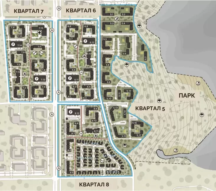 — Начнем с шестого и седьмого кварталов, затем подключим пятый, который расположится на первой береговой линии и будет застроен премиальным жильем, — объясняет Антон Русакевич. — Мы, как и прежде, будем придерживаться концепции малоэтажной застройки: шесть-десять этажей. Дома-доминанты разместим ближе к улице Карастояновой. Очень интересным будет восьмой квартал. В нем появятся не только дома стандартной для нас высоты, но и по-настоящему малоэтажные.