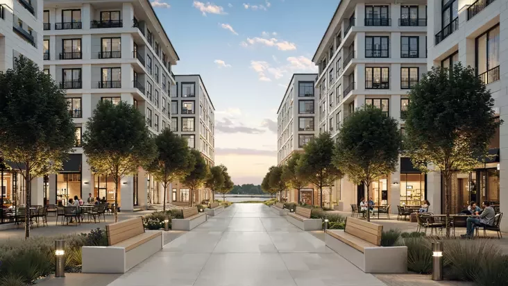 Парк-квартал. Запроектирован около границ нового парка, с коллекционными домами и ресторанной улицей.