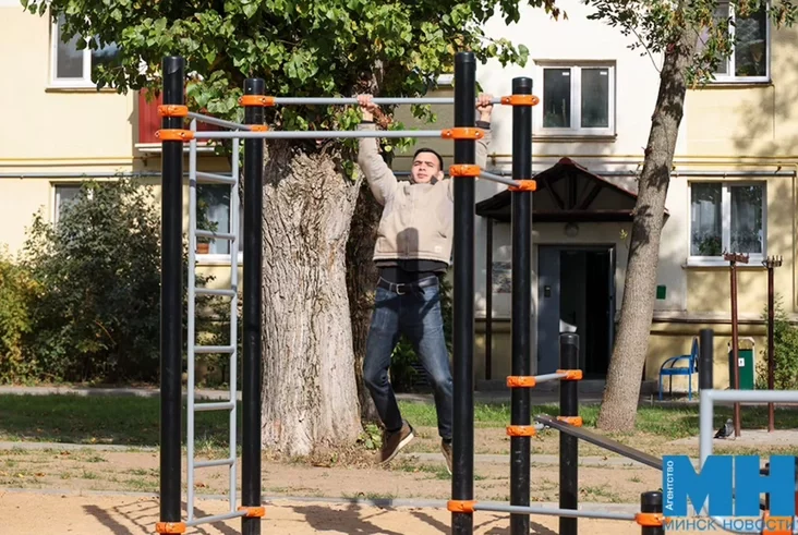 Третий объект — локация для детей от 4 до 14 лет, а также для всех любителей физкультуры. Особенность игровых комплексов — наличие пандусов и других приспособлений для детей с особенностями развития, которые живут в соседних домах. Спортивные конструкции представлены турниками, брусьями, шведской стенкой, наклонной доской для упражнений на пресс, уличными тренажерами, есть даже подвешенный на стойке боксерский мешок.