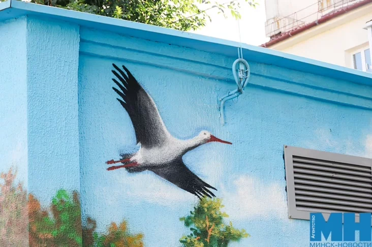 Обновили и другие постройки. Так, на трансформаторной подстанции поселились аисты. Пока в виде рисунка.