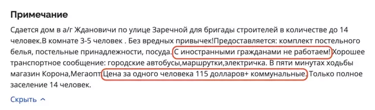 Некоторые, правда, готовы сдавать койко-места только белорусам, о чем указывают в описании.