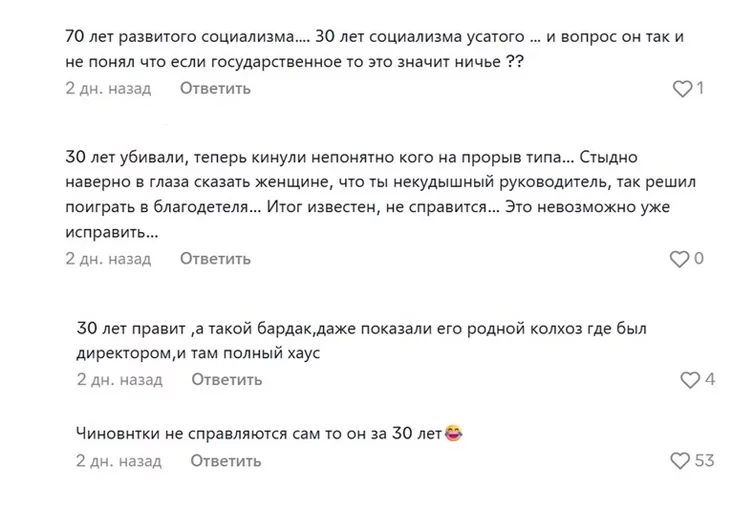 «30 лет правит, а такой бардак. Даже показали его родной колхоз, где был директором, и там полный хаос».