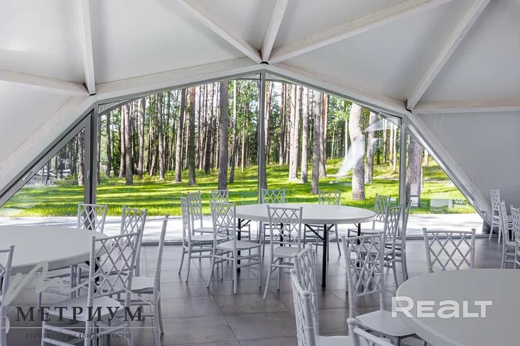Также в загородном комплексе есть возможность провести масштабное мероприятие в новом шатре, который вмещает в себя до 200 гостей и подходит для свадьбы, корпоратива, юбилея, любого выездного банкета, поскольку в нем установлена большая профессиональная кухня. Подчеркивается, что в шатре комфортно в любую погоду, поскольку помещение отапливается и оборудовано санузлами. В наличии — посуда на 200 гостей, 3 кондиционера, огромный экран, профессиональное музыкальное оборудование.