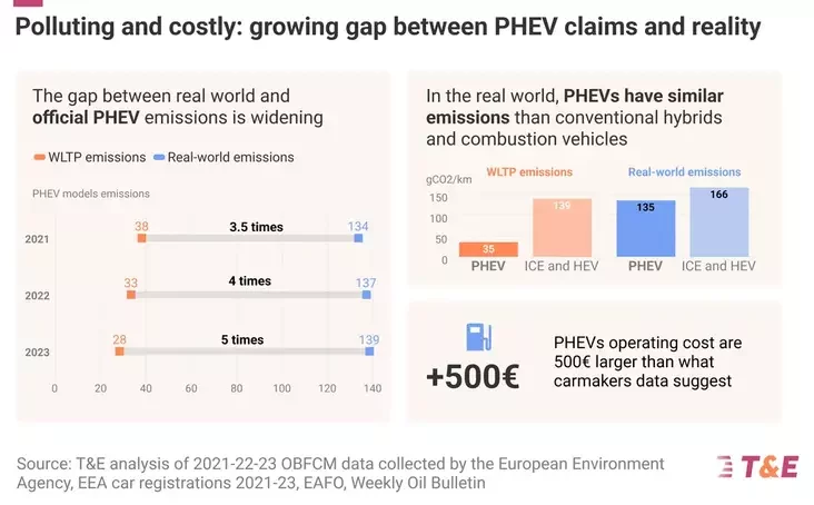 Исследование T&E приходит к выводу, что продвижение PHEV и EREV как переходных технологий является отвлечением внимания от главной цели — полного перехода на транспорт с нулевыми выбросами (BEV).