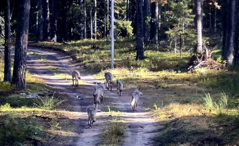 Литовские пограничники зафиксировали, как в Чепкельском болотном массиве из Беларуси в Литву границу пересекла стая волков, всего 9 зверей.
