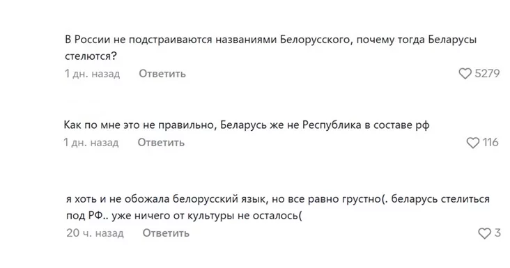 Комментарий «В России не подстраиваются под названия белорусского, почему тогда белорусы стелются?» набрал почти 5300 лайков.