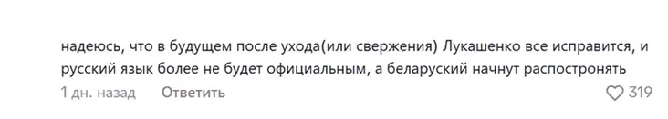«Надеюсь, что в будущем после ухода (или свержения) Лукашенко все исправится, и русский язык больше не будет официальным, а белорусский начнут распространять».