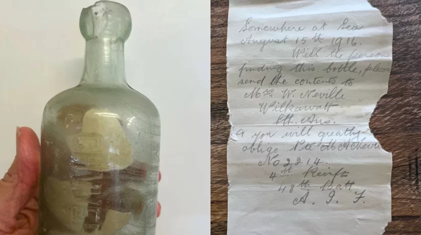 9 октября семья во время уборки пляжа Уортон около города Эсперанс заметила старую стеклянную бутылку Schweppes. Когда ее открыли, внутри оказались два письма, написанные карандашом в 1916 году двумя австралийскими солдатами — 27‑летним Малькольмом Невиллом и 37‑летним Уильямом Харли.